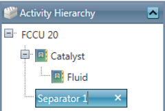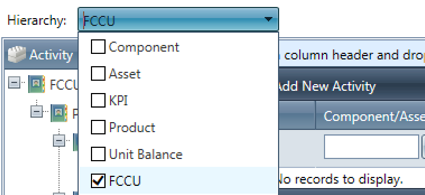 Drag/drop items from the component Activities Hierarchy panel to the New Plan Activity Hierarchy, arranging them in the desired order. Adding activities automatically includes the preset parameters and targets, but does not include child components (ex: if "Process Unit" is added to the plan, "Catalyst" and "Separation" are not added).