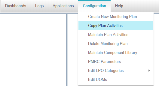 A plan is a custom hierarchy of activities for a specific unit or process. For example, the Process Engineer wants to create a monitor plan for FCCU. He/she creates a new plan by navigating to: Configuration > Create New Monitoring Plan