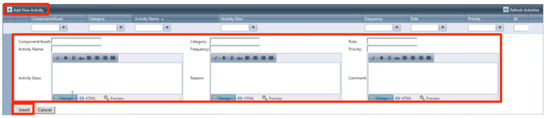 button and input details for the component / asset. Click the Insert button to save changes.