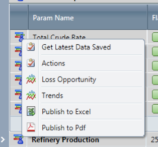 Trends: Right-click and select "Trend" option to display each of the activities and parameters trend graphs; these trends can also be available from the View Activities and in relevant SDV’s such as the Engineering Display."