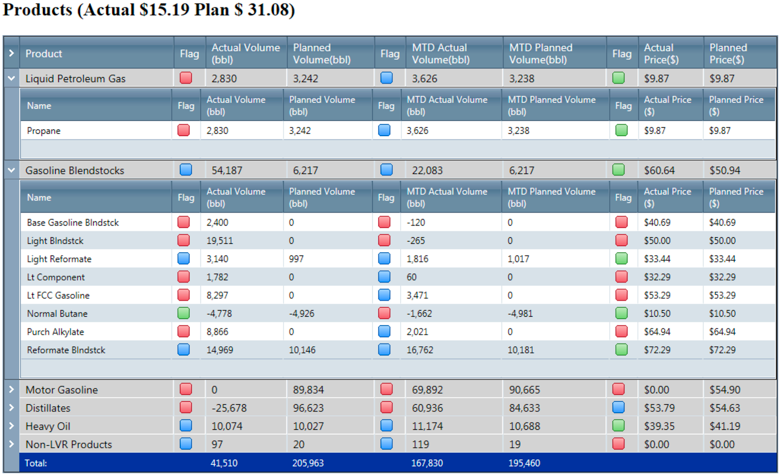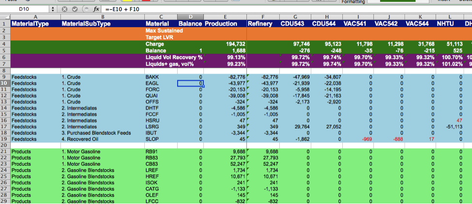 Shown above is the plan called "Daily Target Plan 2" which was designed for daily communication between refinery planners and operations.
