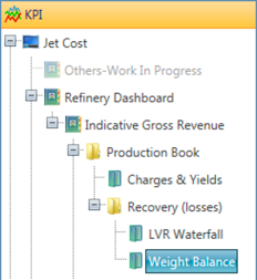 - The key performance indicators (KPIs), made of data of different data types such as process variables (ex: reactor temperature profile), pricing, asset status etc.; each of them is a parameter related to the parent activity. They can also be complex processes or studies (ex: backcast result or catalyst activity).
