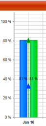 For each month, the given capacity for Gas and Diesel is compared to actual production, and shown in the graph as Actual Percentage of Capacity versus Planned Percentage of Capacity. The blue bars represent actual percent of capacity and the green represents plan actual percentage of capacity.