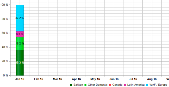 The bar graph in the Crude Blend section displays various categories of crudes run in each month.
