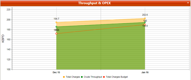 For each run, the graph in this section displays: total crude charge, crude throughput and total charge budget.