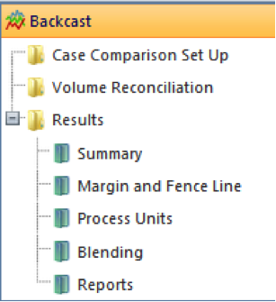 The Backcast application gathers actual production data for a period of the past to be studied (typically a calendar month), and compares the data to the output of three linear programming (LP) cases. These cases, called Case 1, Case 2 and Case 3, represent the optimum output from the LP setup in actual conditions of the month being studied, but in a gradually more restricted set of variables (from Case 1 to Case 3). It uses Actual prices for the month studied -- typically market-based prices for the location, and the comparison is therefore made at the gross operating margin level (product value -- feedstock cost -- variable costs such as utilities and chemicals). Case 3 is configured to be the nearest representation of actual production, and therefore can also generate a list of improvements for the LP. The other cases complement the study (each company has its own method) by allowing to observe the effect of operational conditions (unit charge, blending recipes) and supply chain constraints (crude availability, product grades mix). All outputs created within the Backcast application can be exported to Excel and copied directly into PowerPoint presentations.