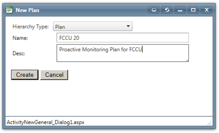 Select a hierarchy type, name the plan and enter a description (ex: Proactive Monitoring Plan for FCCU).
