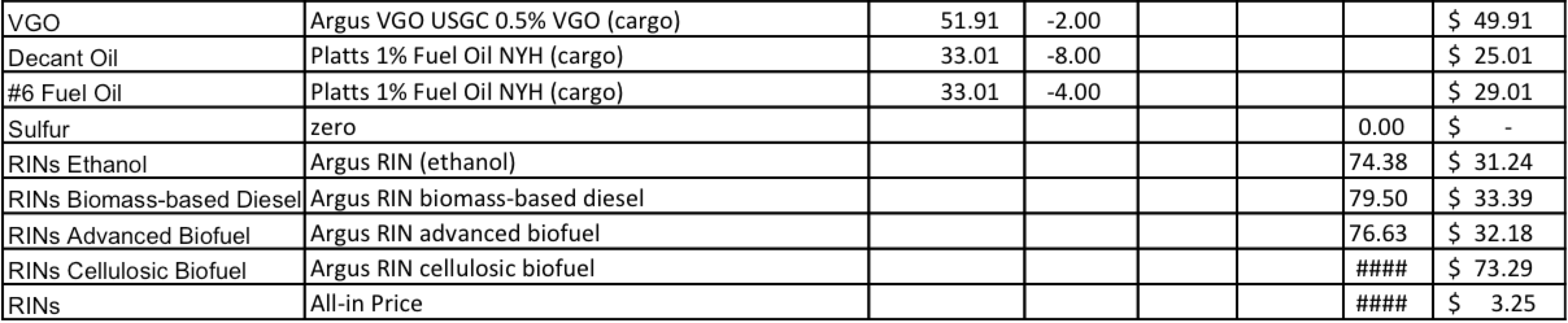 - Column "Refinery" is the sum of all columns to its right: it represents how the various feedstocks are processed and intermediates blended,